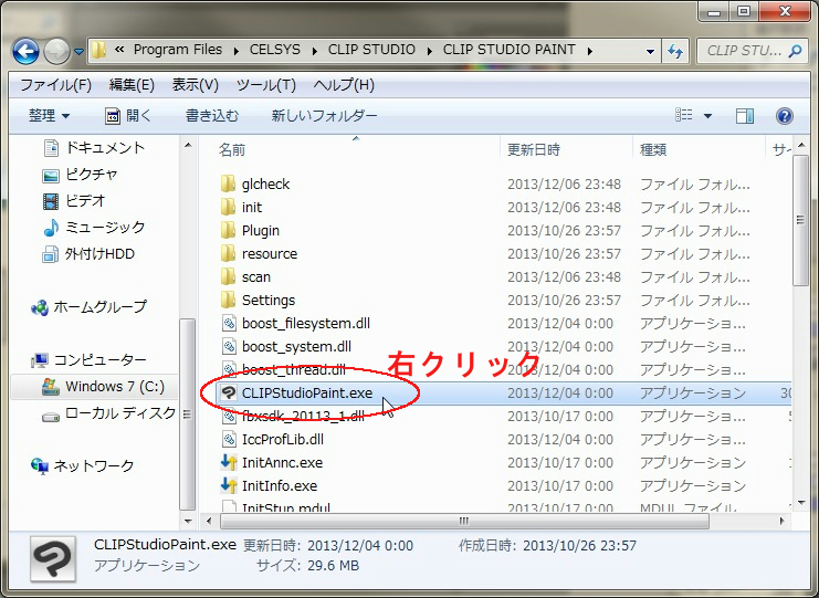 最後に「CLIP STUDIO PAINT」と書かれたフォルダーをダブルクリックです。