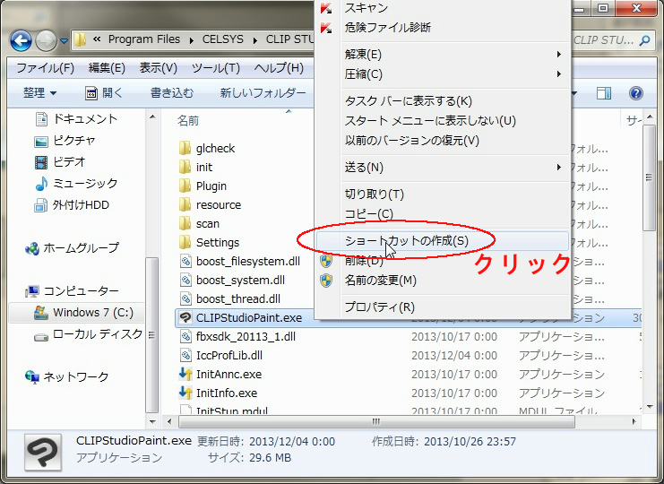 これで、デスクトップには「CLIPStudioPaint.exe - ショートカット」